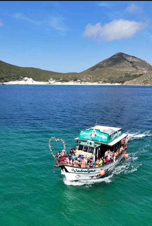 Descubra a deslumbrante beleza de Arraial do Cabo em um passeio de barco inesquecível, perfeito para casais e famílias!
